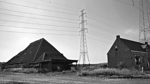Huidig stand hoeve half afgebroeken en woonhuis afgebrand |
