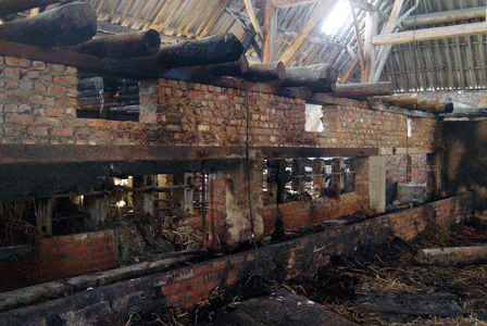 De schuur werd reeds tweemaal in brand gestoken en het boerenhuis kort en klein geslagen, alle ruiten zijn ingegooid en alle deuren ingestampt.