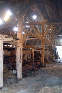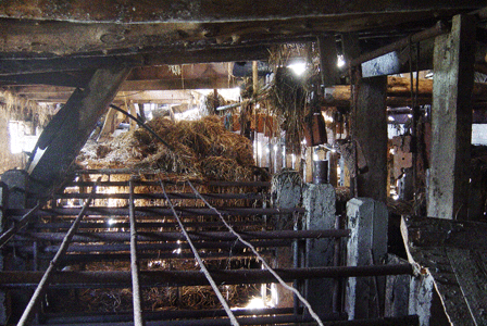 Binnen in de stallen: