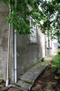Bemerk de oude stenen aan de onderkant afkomstig van oude bewoning. |